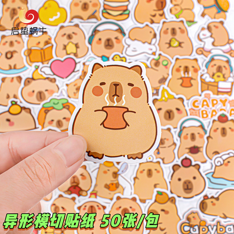 カピバラステッカー50枚、漫画かわいいモルモット絵文字素材、イルカドア装飾パターン、メイラードステッカー