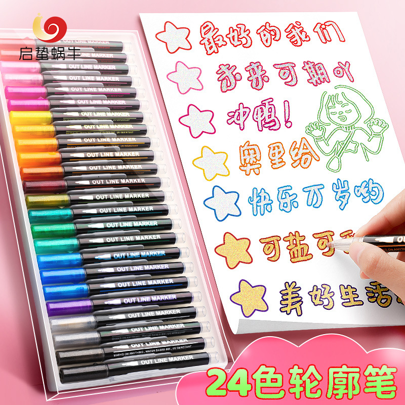 2色輪郭ペン 24色グリッター手書き新聞専用ジェル 2色蛍光マーカー マークライティング 学生