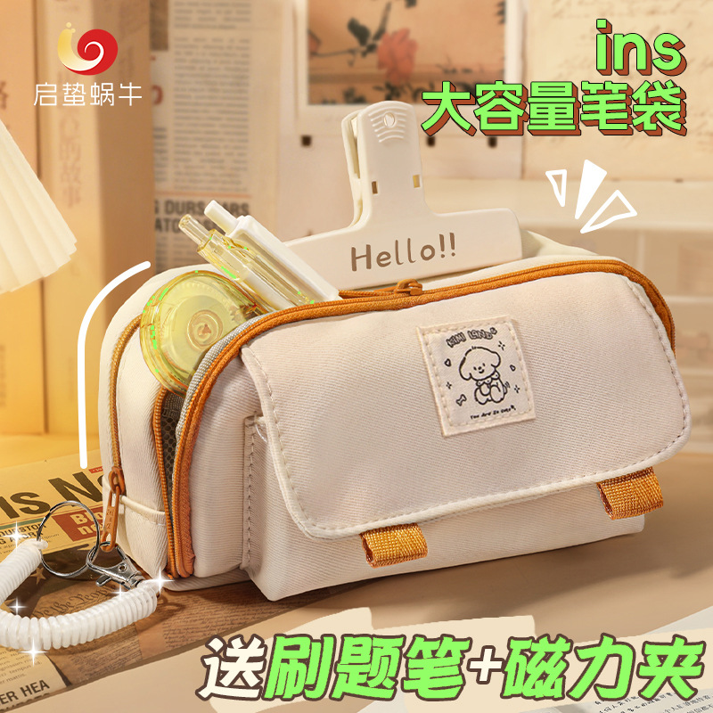 子犬鉛筆バッグ 4 層大容量文具バッグシンプルな文具箱女の子モデル 2024 新しい人気の学生かわいい