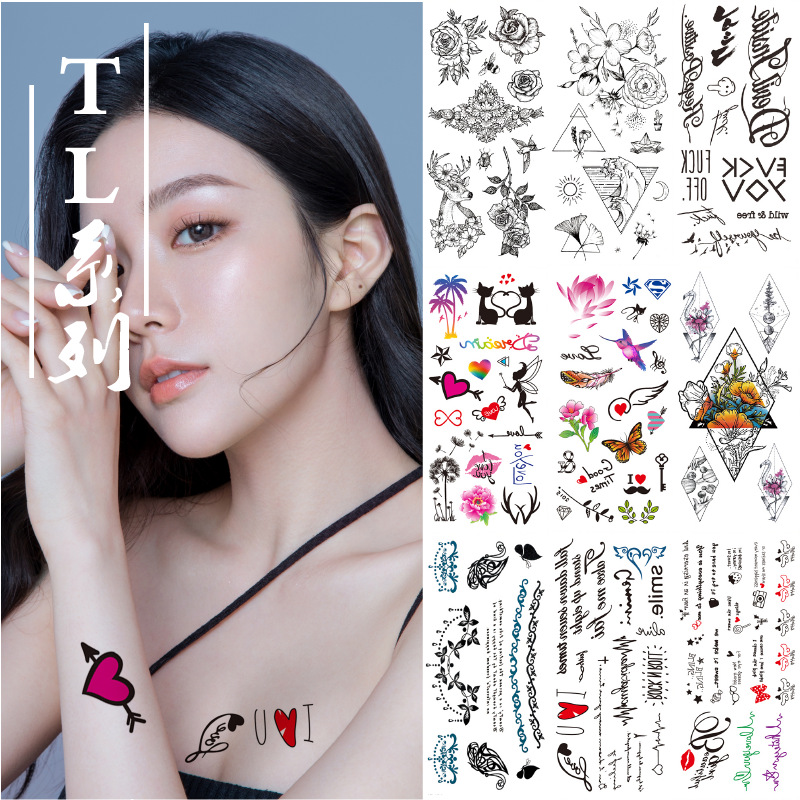 工場直販 防水タトゥーシール 小清新風 英語 花 蝶 韓国風 タトゥーステッカー 在庫あり