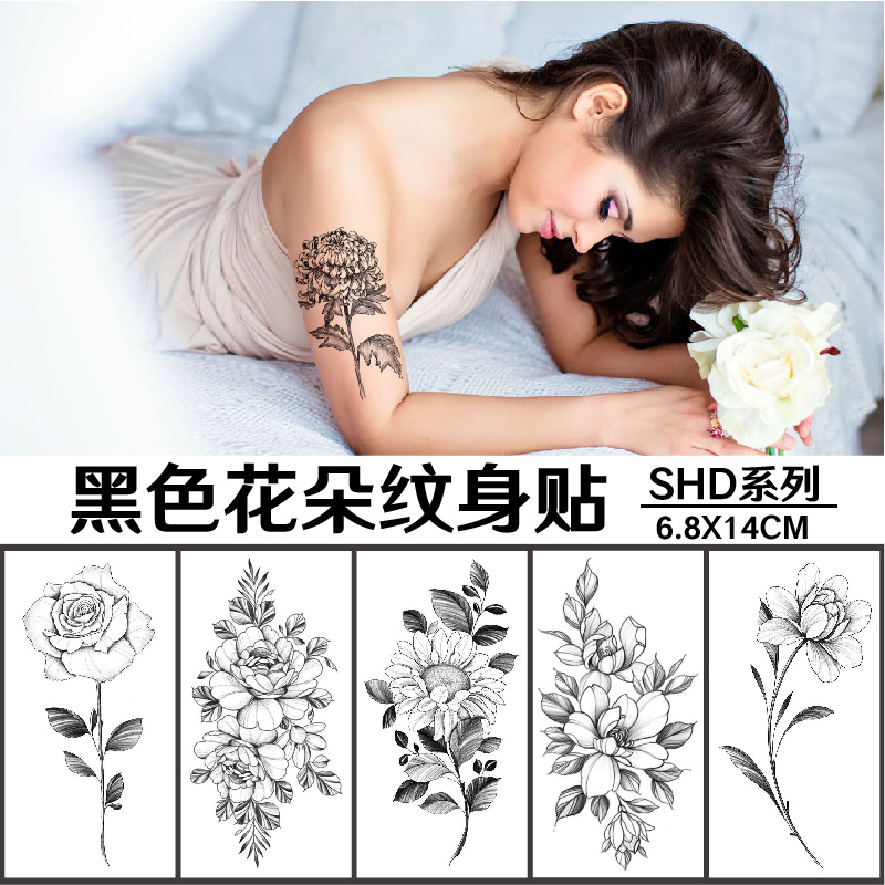 クロスボーダーの供給源の白黒スケッチの花の刺青は防水の黒色の色の花の刺青のシールのセットの現物の卸売りを貼ります。