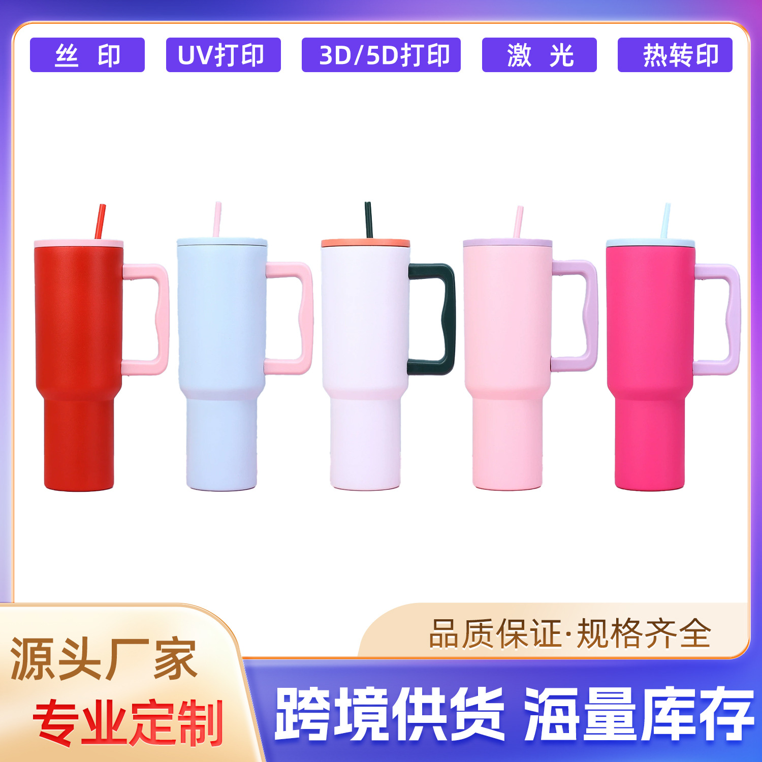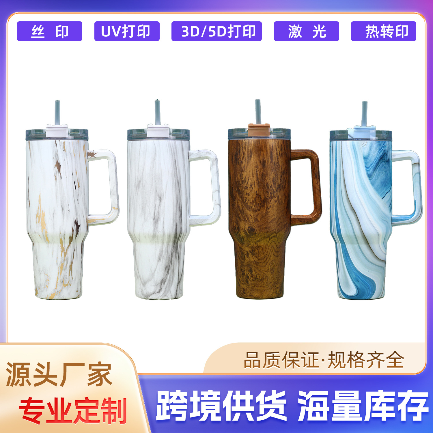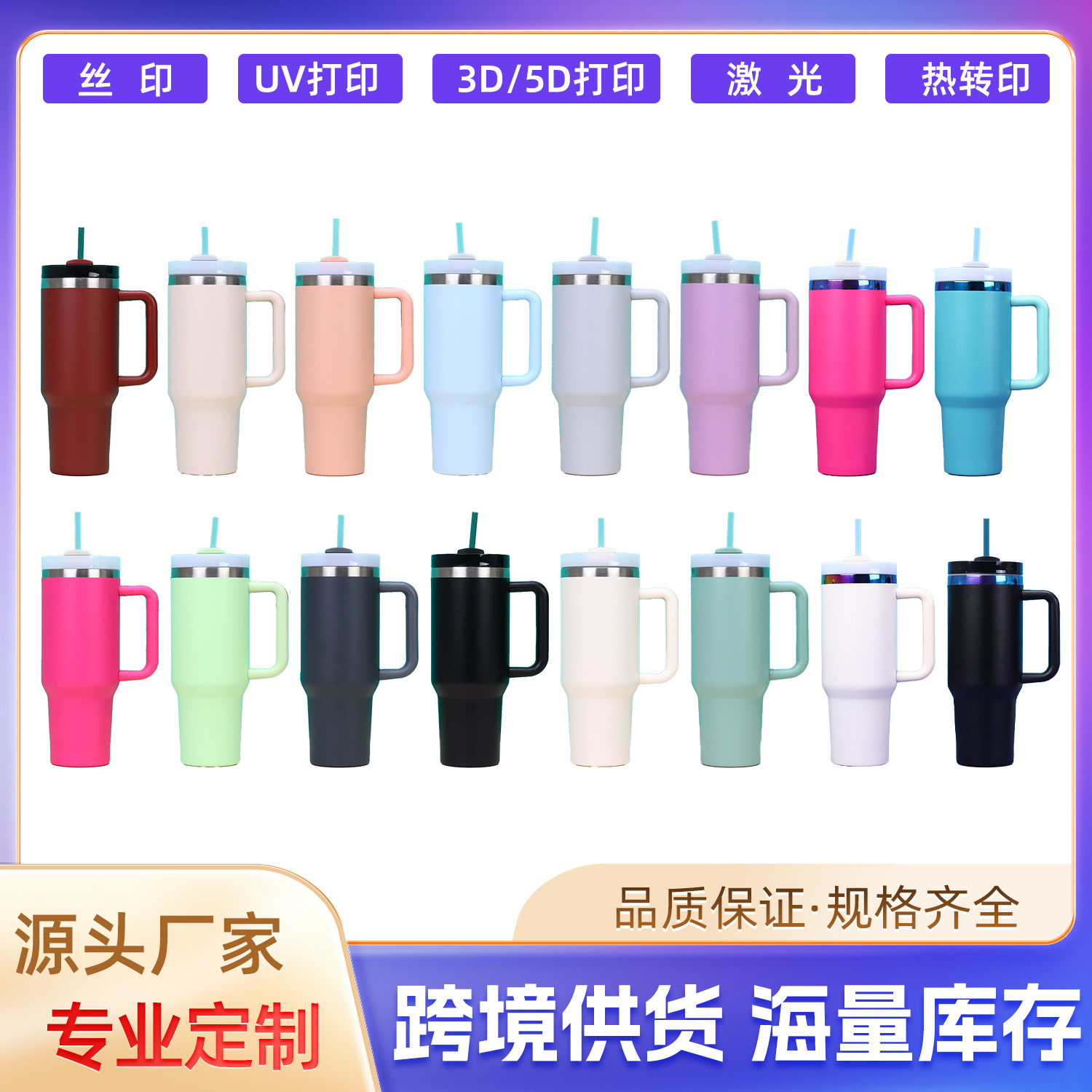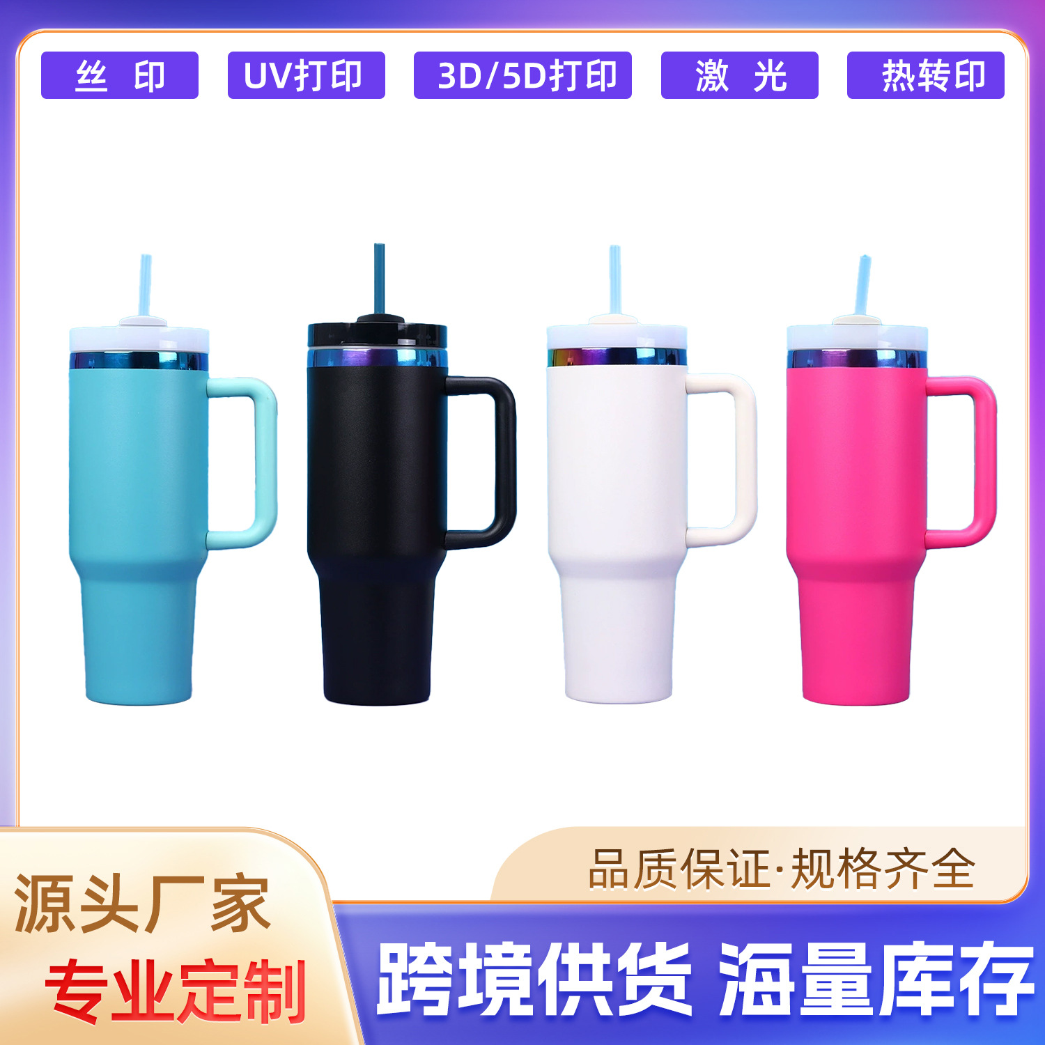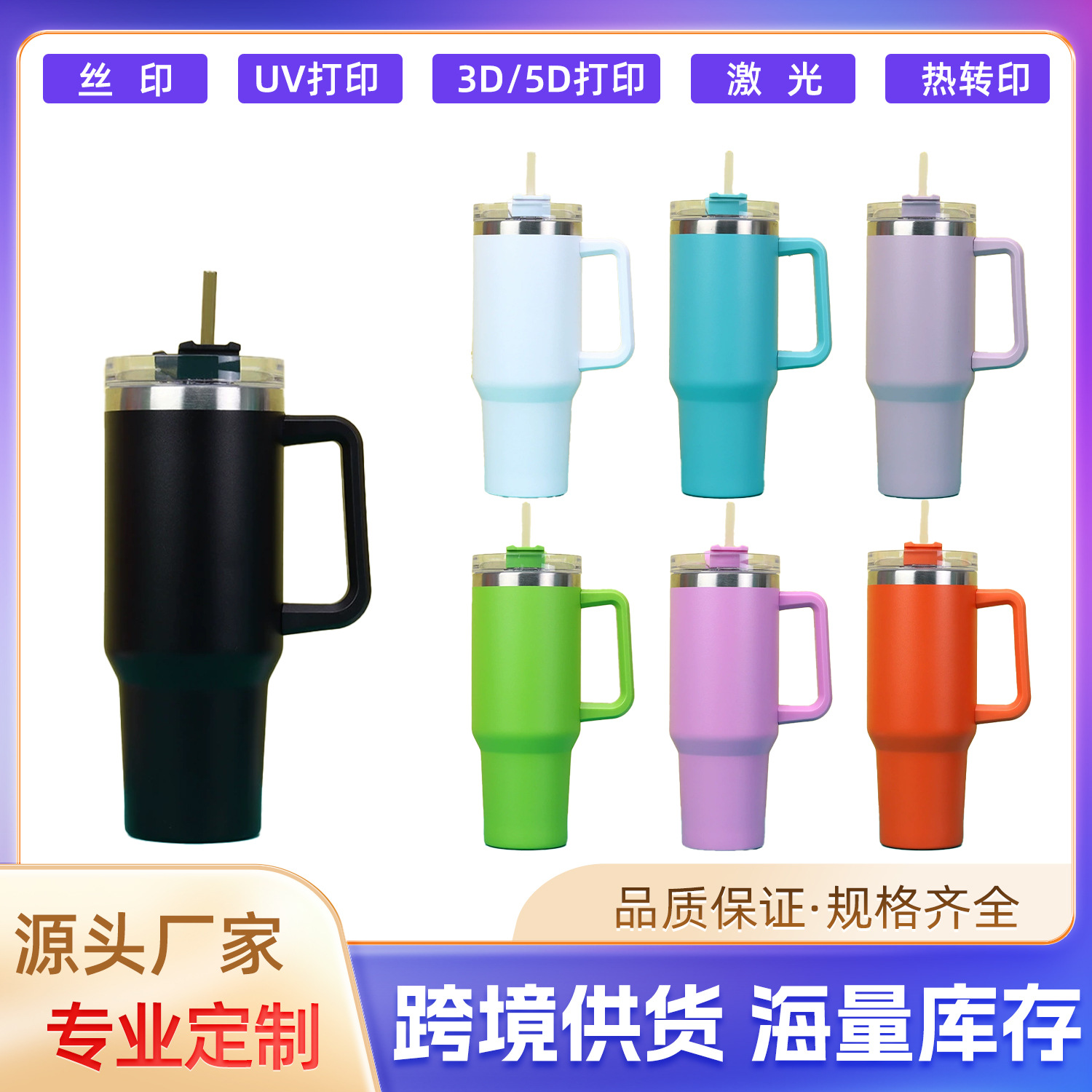 国境を越えた40オンスの質感シリーズの自動車カップ大容量屋外携帯ハンドルストローカップ車載保冷氷覇カップ