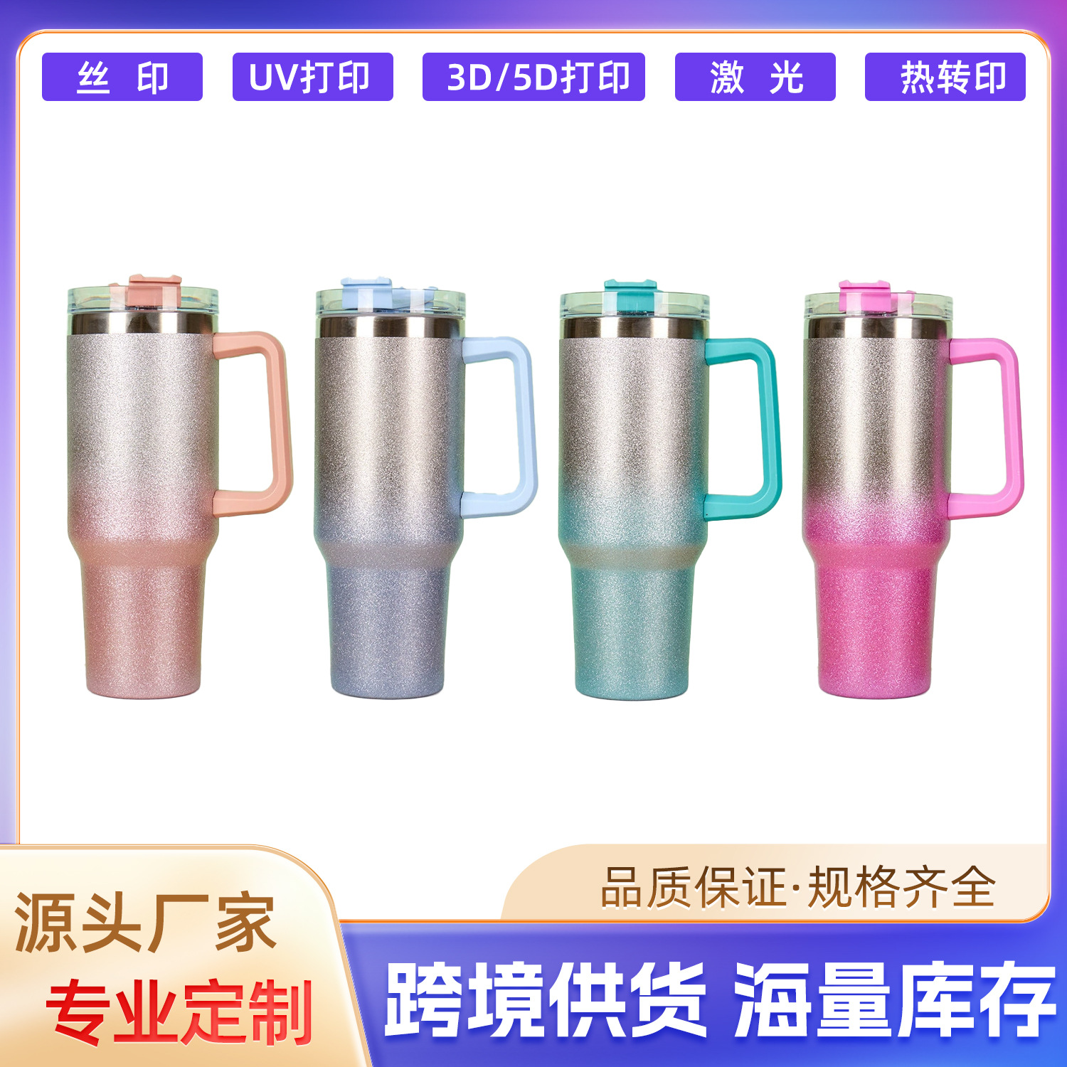 新型ダイヤモンド漆グラデーション40自動車カップステンレス保温カップアメリカ大容量車載ハンドル氷覇カップ