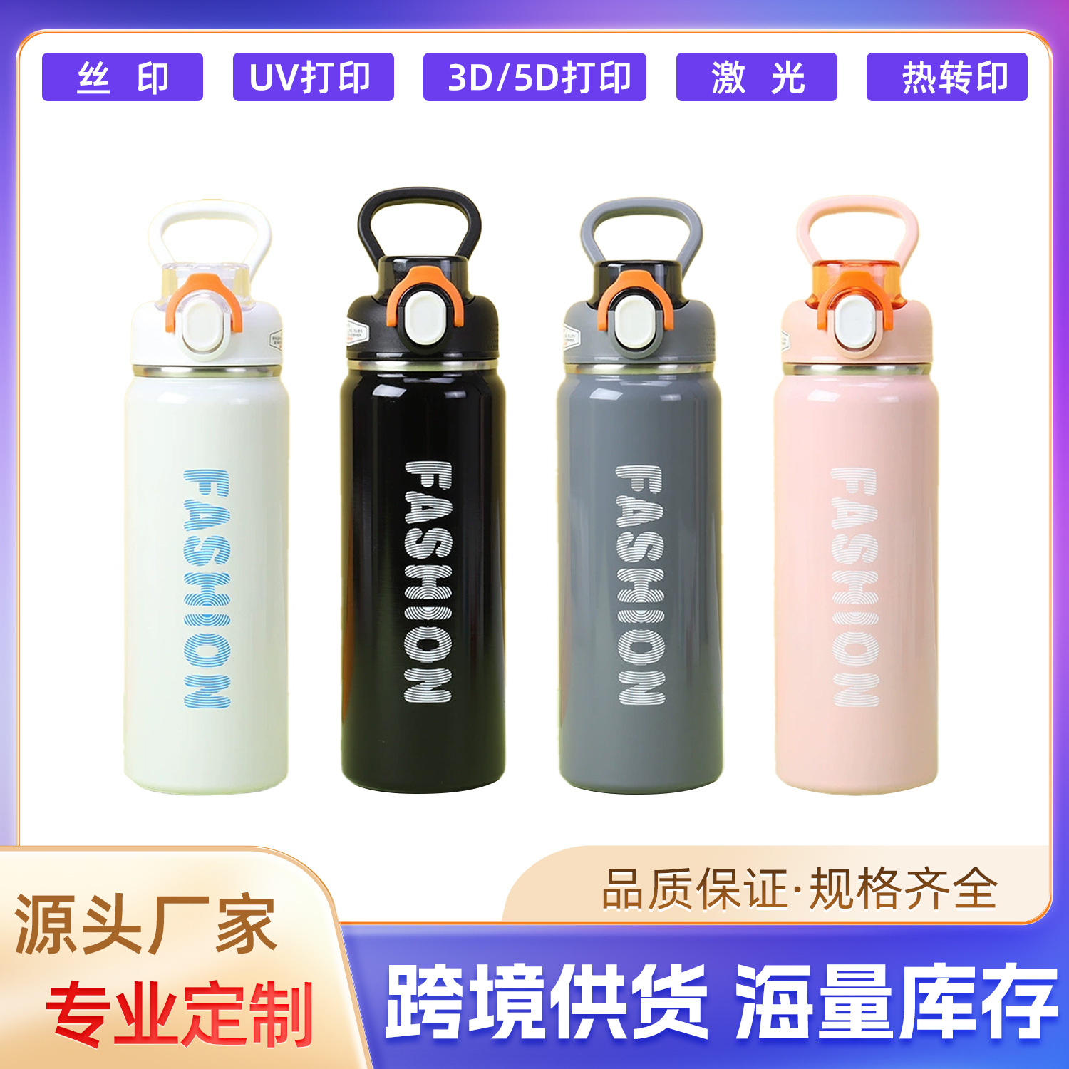 クロスボーダー304ステンレス日本式ストロー保温カップ屋外携帯式ハンドノズル運動水筒印刷ロゴ