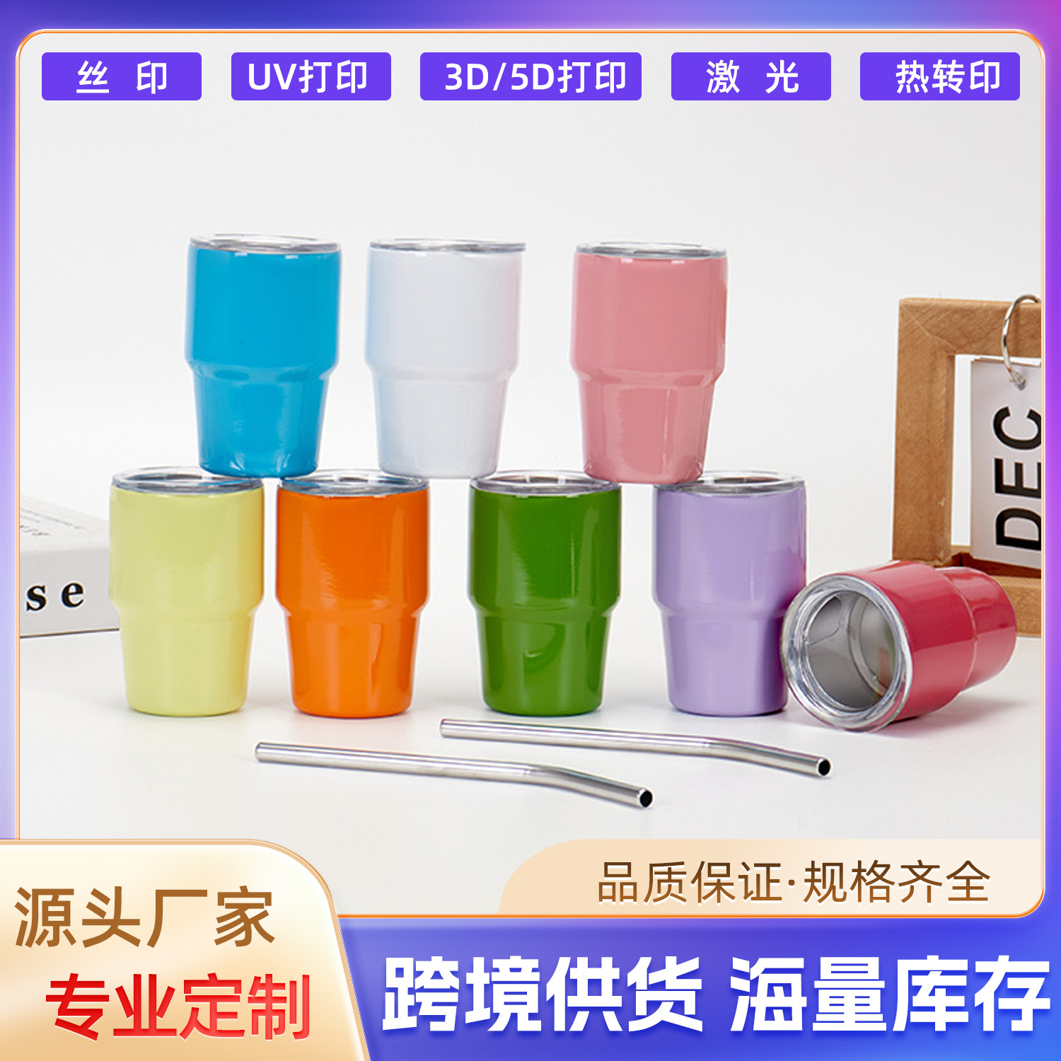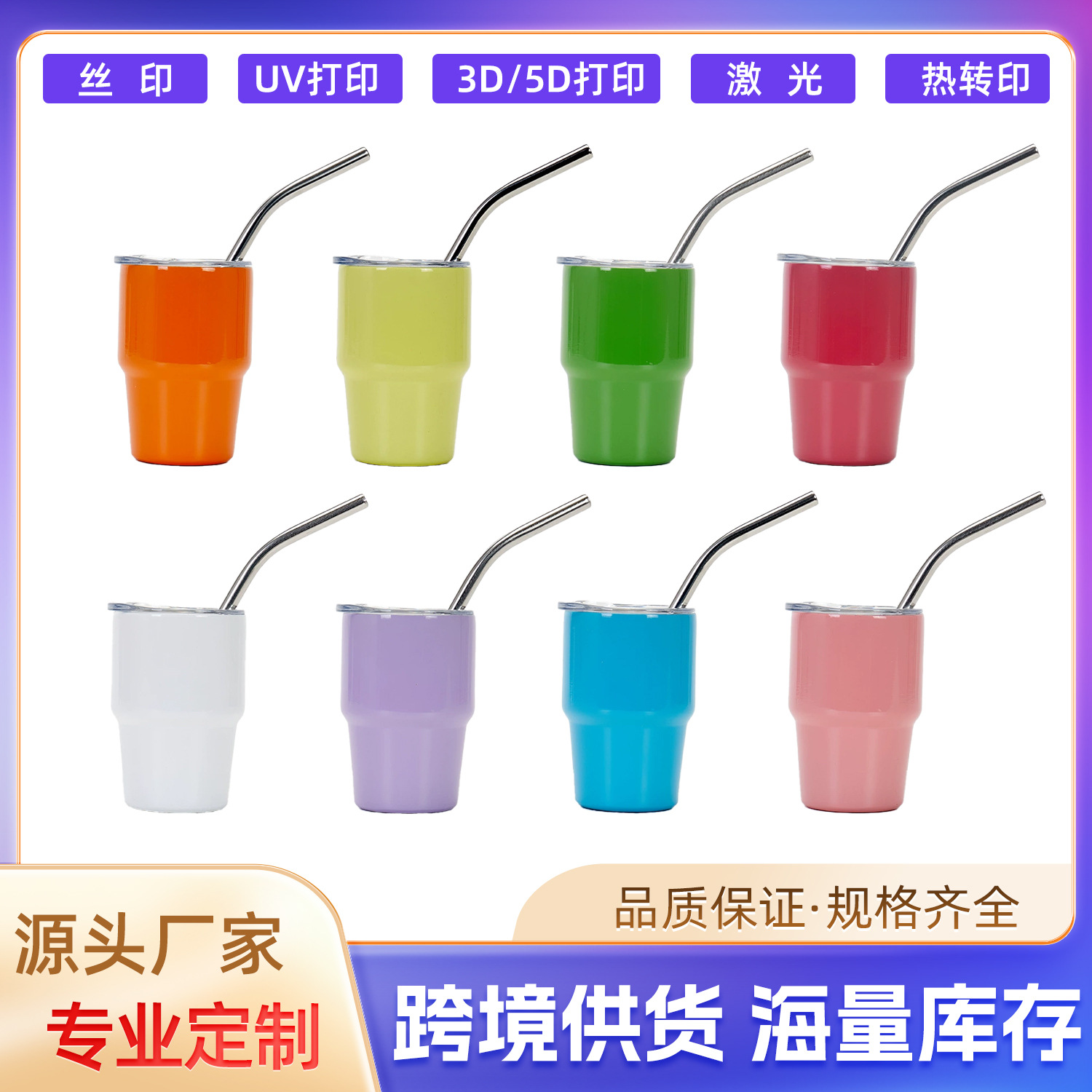 新品304ステンレス3ozミニカーカップグラスストロー付き車載携帯式エスプレッソカップ