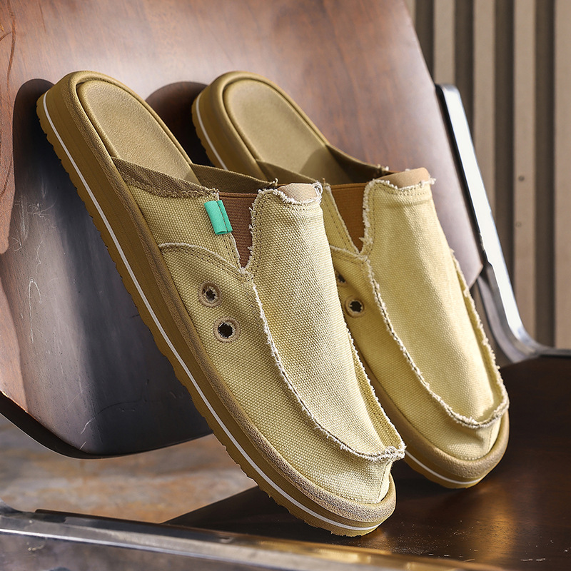 キャンバスシューズメンズ夏カジュアル怠惰なスリッポンハーフスリッパメンズ大きいサイズクロスボーダー包頭スリッパ漁師布靴