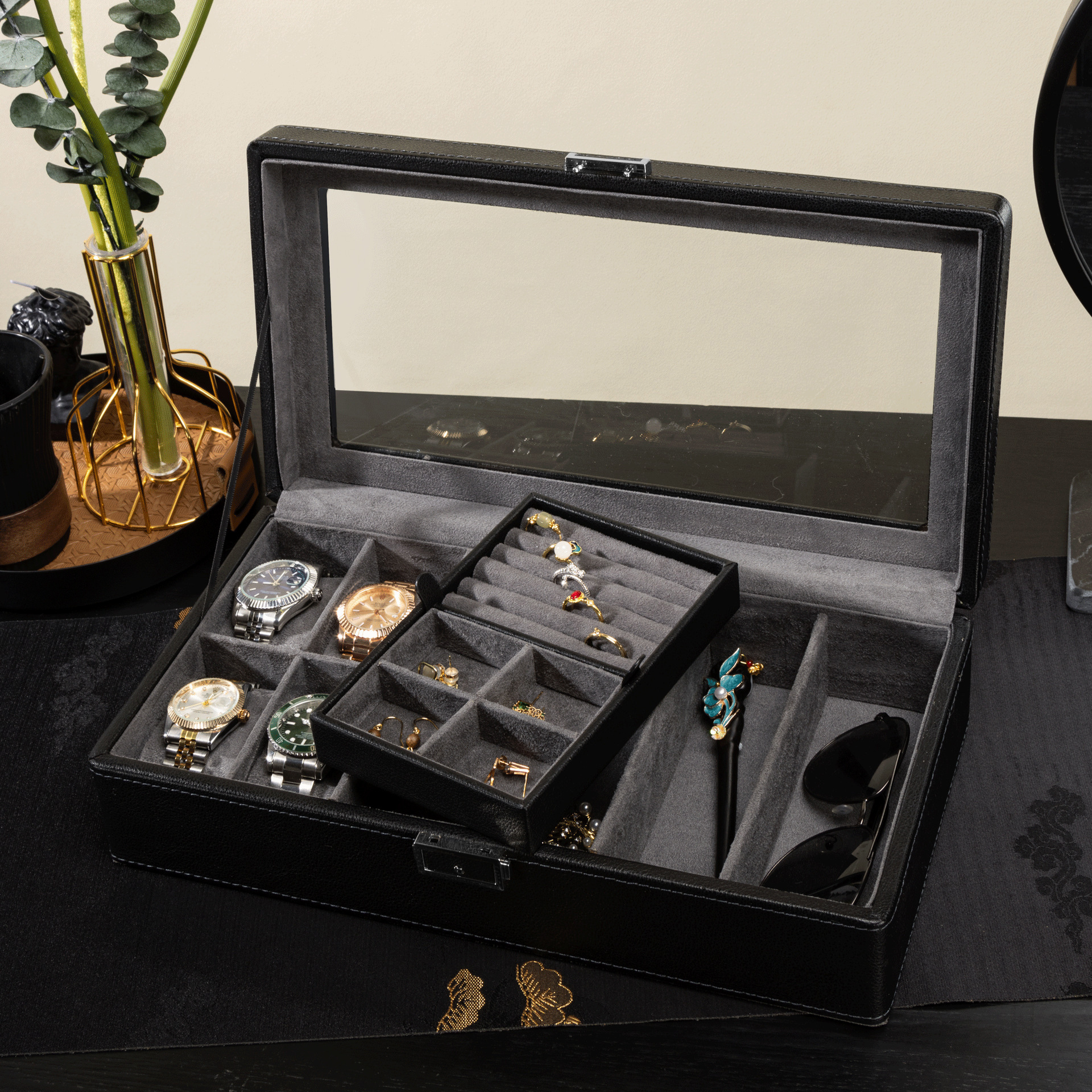 腕時計ボックスアクセサリー炭素繊維PUダブル6テーブル収納ボックスカフスボックス多目的収納ボックス腕時計収納ボックス