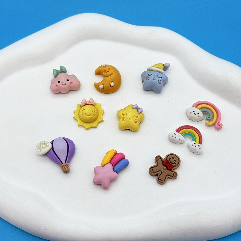 新しいヘアアクセサリー、車の装飾、かわいい雲、星、虹樹脂アクセサリー、クリーム接着剤、DIY自家製携帯電話ケース