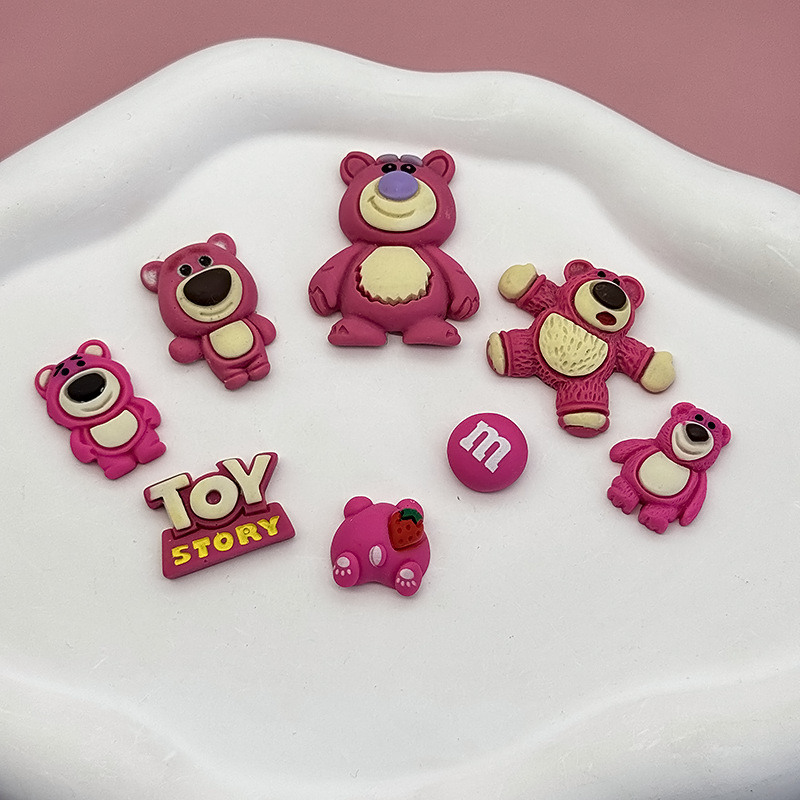 熱い販売かわいい漫画クマ食品おもちゃ diy 樹脂ジュエリーアクセサリー穴靴靴花アクセサリー