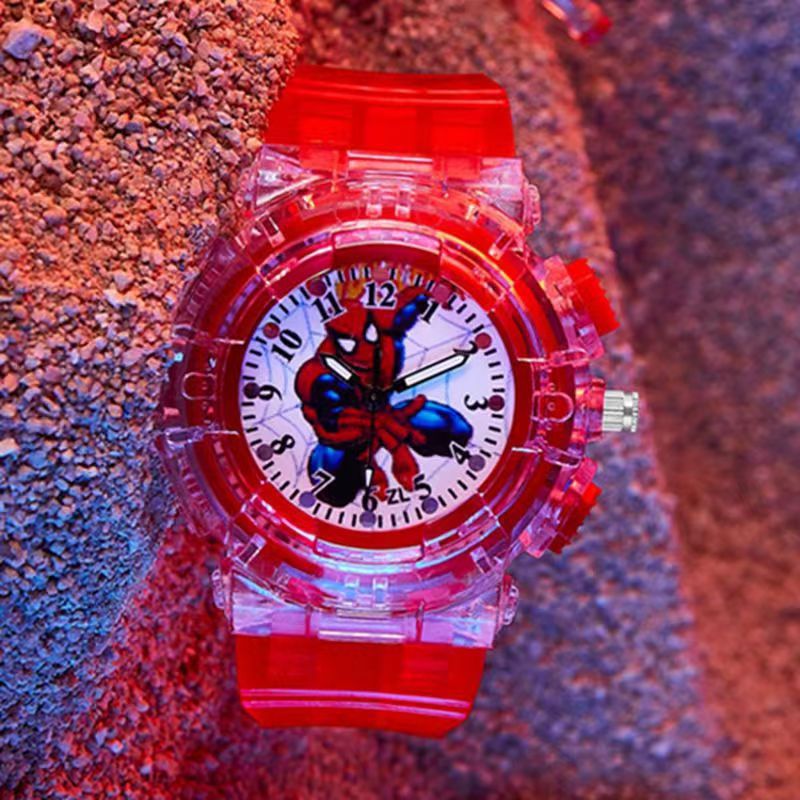 スパイダーマン夜光子供腕時計アニメ発光フラッシュ腕時計男の子指針式カラフルフラッシュ腕時計