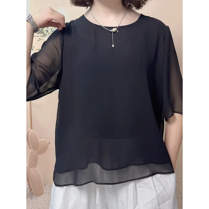 夏のホットスタイルラウンドネックファッショナブルで多用途なパールガーゼ半袖