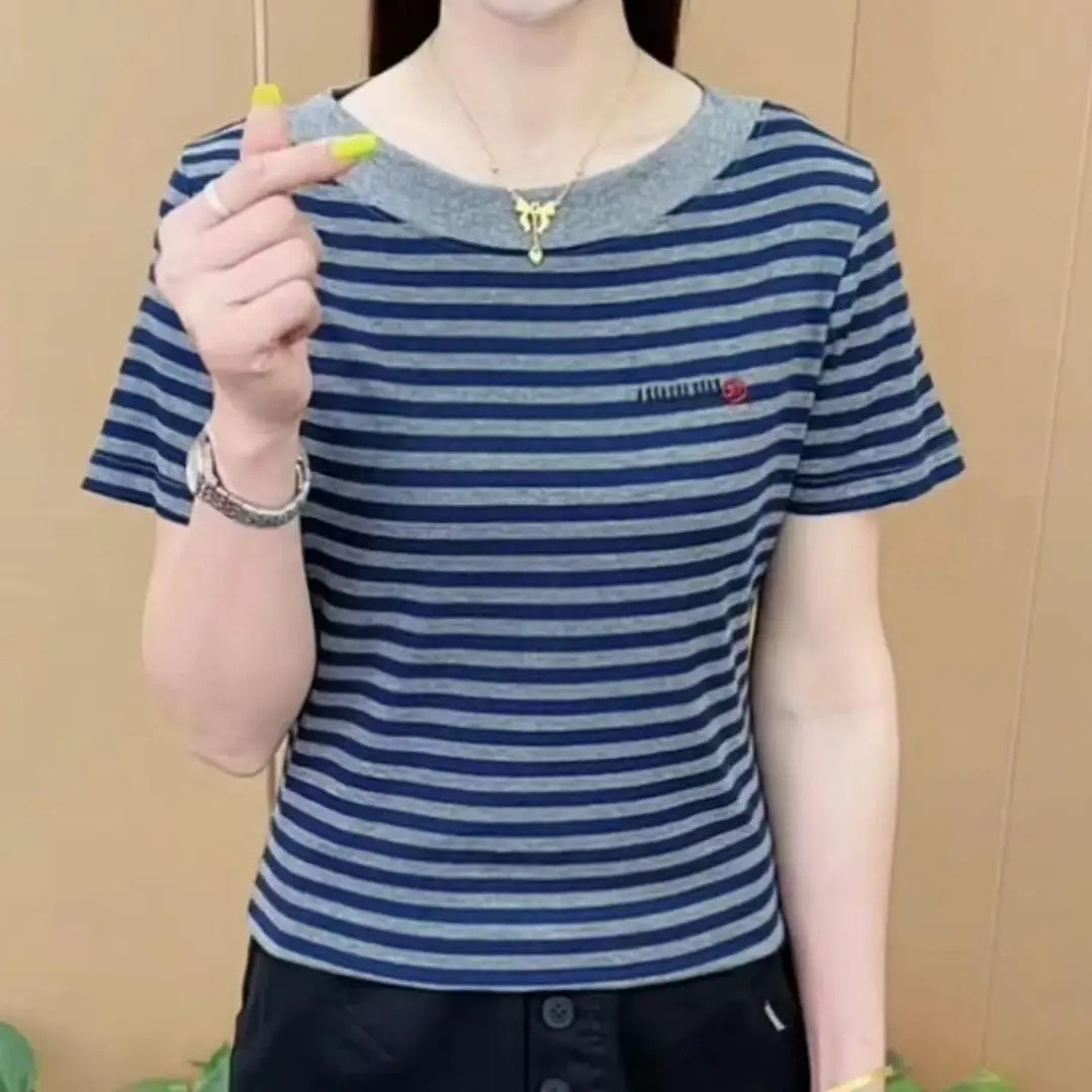 夏のゆったりとした新しいスタイルの中高年ファッション、スリム、カジュアル、多用途の無地半袖Tシャツレディーストップス