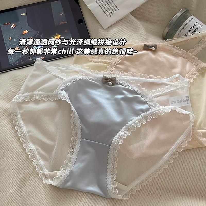 新しい純粋な欲望の妖精のようなレースのサテンアイスシルク下着女性の夏のシームレスなセクシーな肌に優しい通気性のある女性のブリーフ