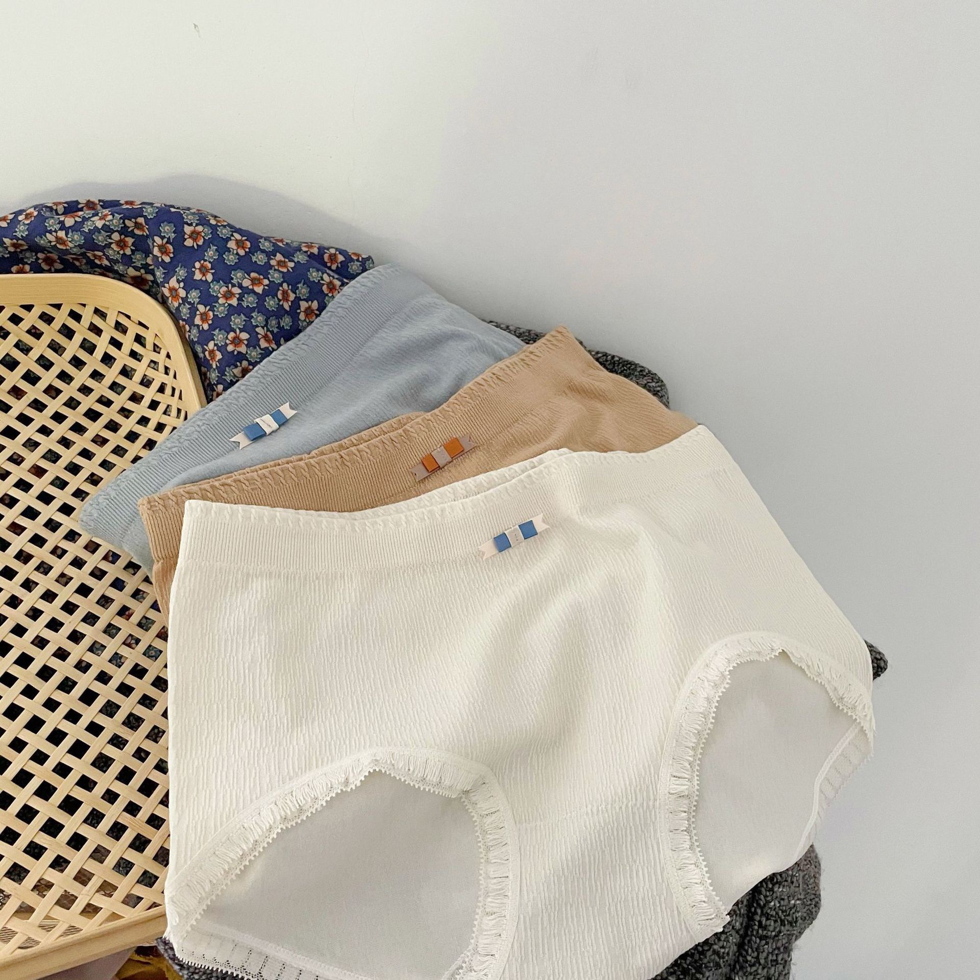 モーデール日系シンプルパンツ女性中腰立体模様高弾裸感全綿抗菌股少女三角パンツ