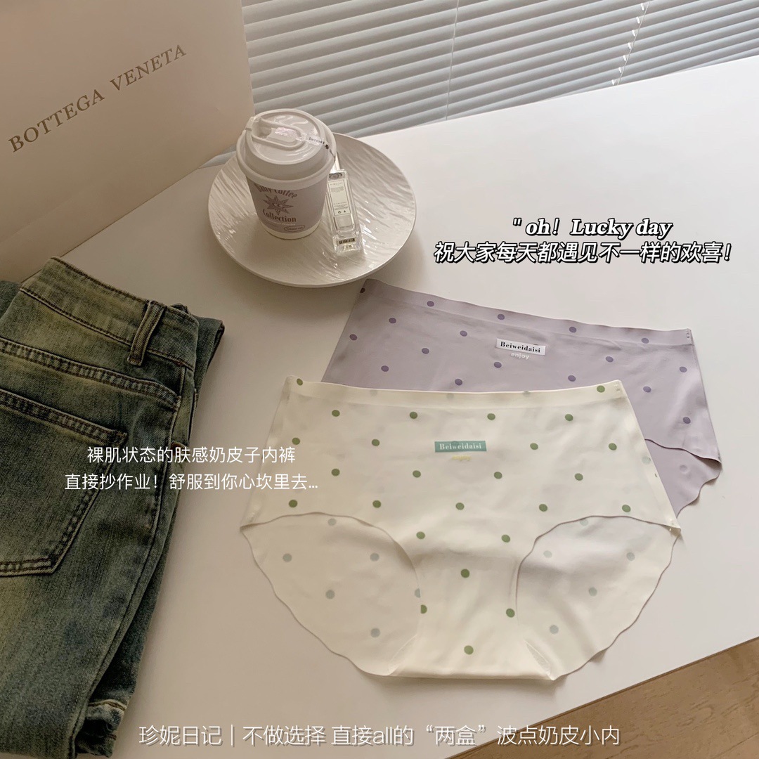 清新な妹 ~ 日本式氷糸無痕波点少女下着シンプル通気股一枚式女性三角ズボン