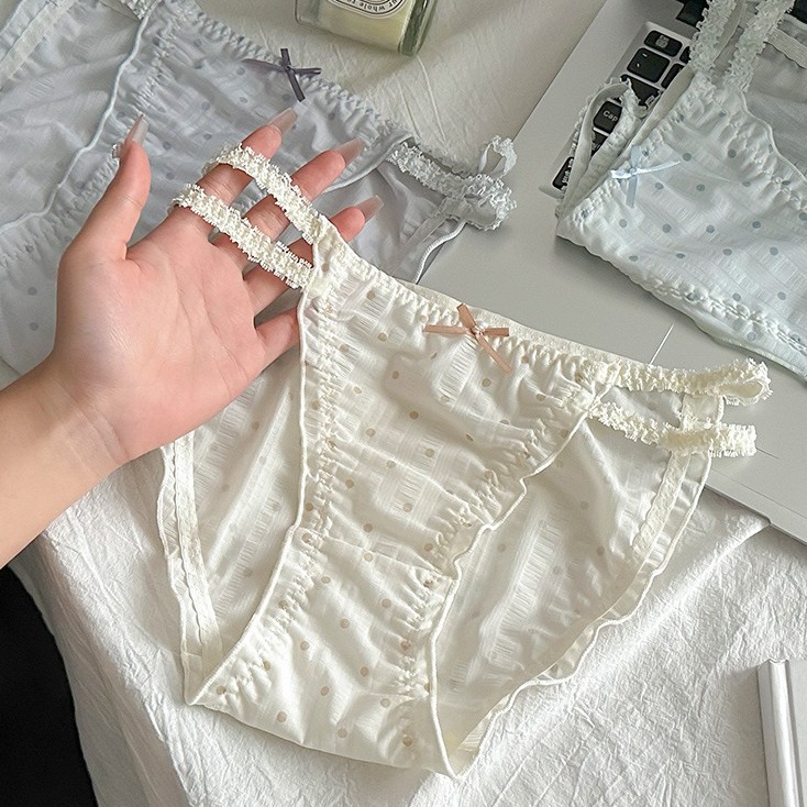 日本製水玉プリーツバブルアイスシルク下着女性の純粋な欲望ハイスリット抗菌通気性綿クロッチアイスシルクブリーフ