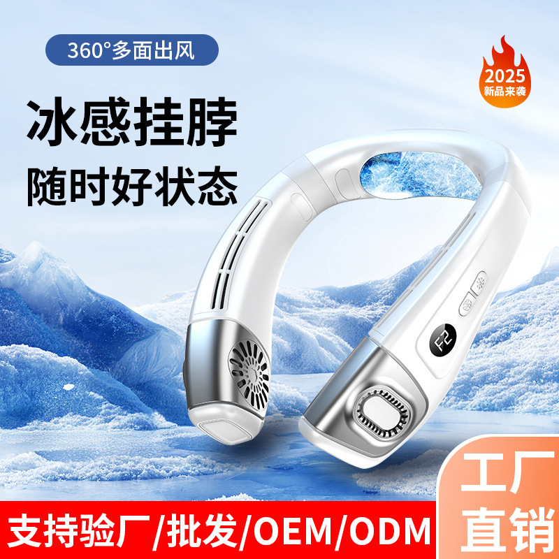 2025半導体冷凍高速ファンポータブル屋外冷却神器USB充電デジタル表示首ファン