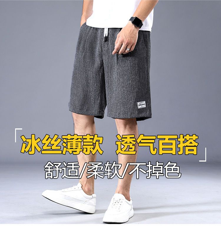 特大サイズ5分ズボン学生男性氷糸デブはバスケットボールのランニングカジュアルパンツを大きくして、夏はゆったりしています。