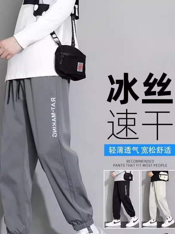 高品質の夏の氷糸のズボンの男性の足首のズボンの夏の爆発的なファッションのスポーツの速乾のレジャーの長いズボン