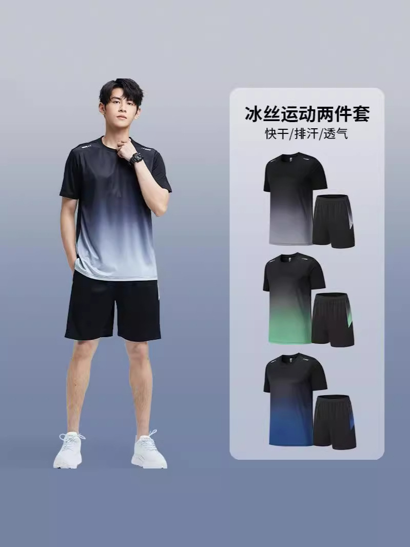 スポーツスーツ男女夏シルク速乾tシャツ半袖バスケットボールトレーニング服朝ランニング服装備