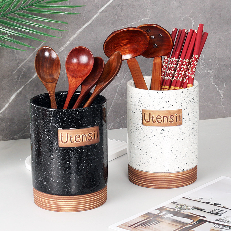 クリエイティブなセラミック箸立て、水切り機能付き、キッチン収納、箸、ナイフ、フォーク、調理器具入れ、家庭用収納箸入れ