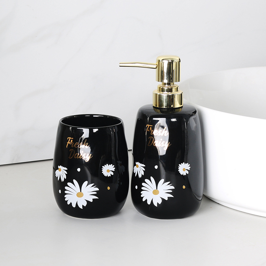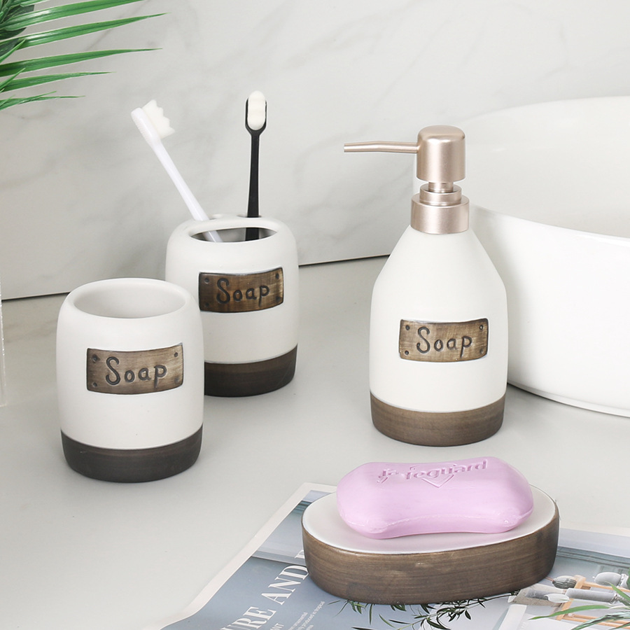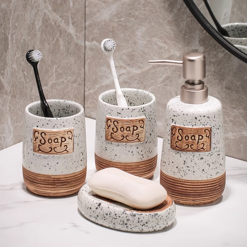 シンプル陶磁器風呂四点セットうがいカップ押え瓶セットホテル民宿風呂用品クロスボーダー卸売り