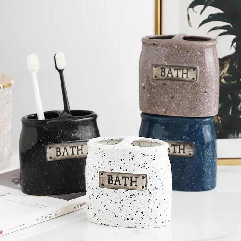 軽奢な色釉セラミック歯ブラシホルダー、家庭用洗面台用歯磨き粉ホルダー、ホテルや民宿向け高級歯ブラシスタンド収納カップ