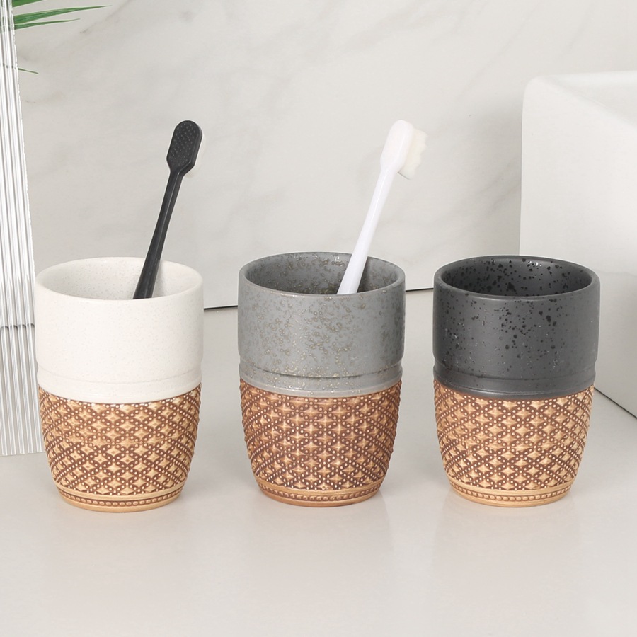 国境を越えた家庭用陶磁器嗽カップ高颜値浮き彫り歯ブラシカップホテル民宿洗面用品カップ卸売り