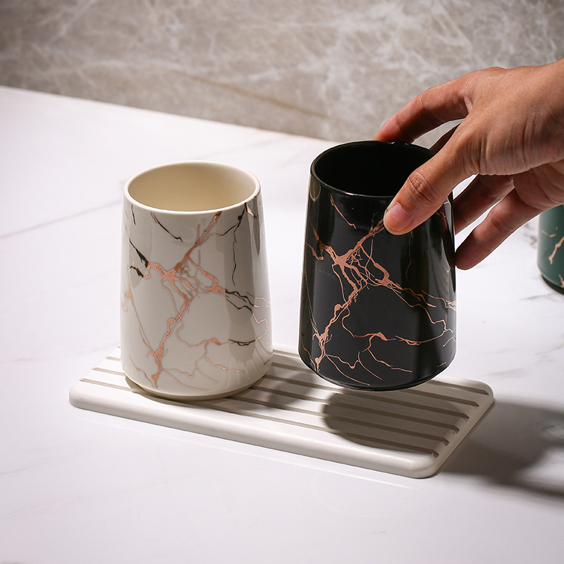 陶磁器うがい杯高級感金紋歯ブラシカップ高颜値家庭用うがい杯ホテル民宿クリエイティブカップ