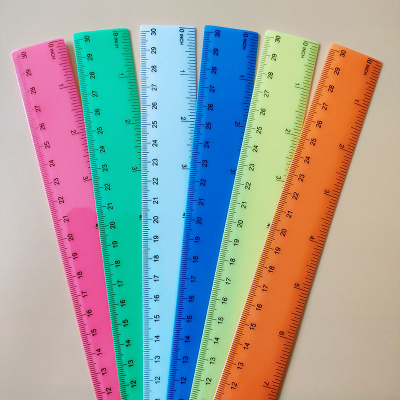広告定規 30 センチメートルカラープラスチック定規フラットポケットダブルベベルダブルスケール高精細スケールカラー透明定規