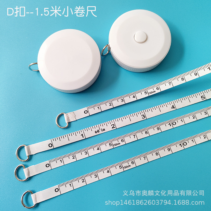 D型金属ボタン白色1.5メートルインチ小巻き尺伸縮プラスチック皮尺量三囲耐摩耗性軟尺米定規