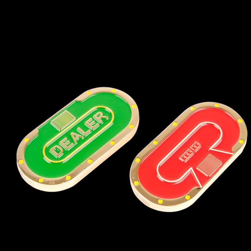 新しい徳州のトランプの両面の楕円の金属の荘のコードのdealerの重厚な手触りの良い試合のクラブの専用