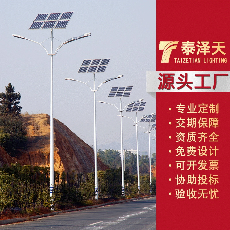 メーカーがカスタマイズした LED 人体誘導爆発量街路灯屋外 10.12m 高低ダブルアームソーラー街路灯