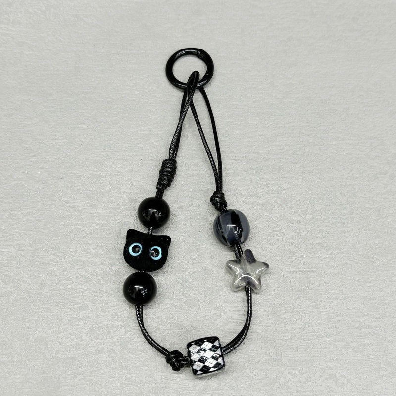 猫の携帯電話の手首の短いタイプのレトロな黒色の手作りのccdのひものチェーンの数珠のカメラの携帯電話の鎖の掛け金