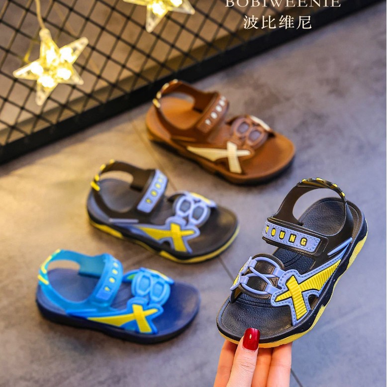 25新型男児運動サンダル小学生の柔らかい底の中の子供の男の子の足の指のマジックテープのサンダルの卸売り