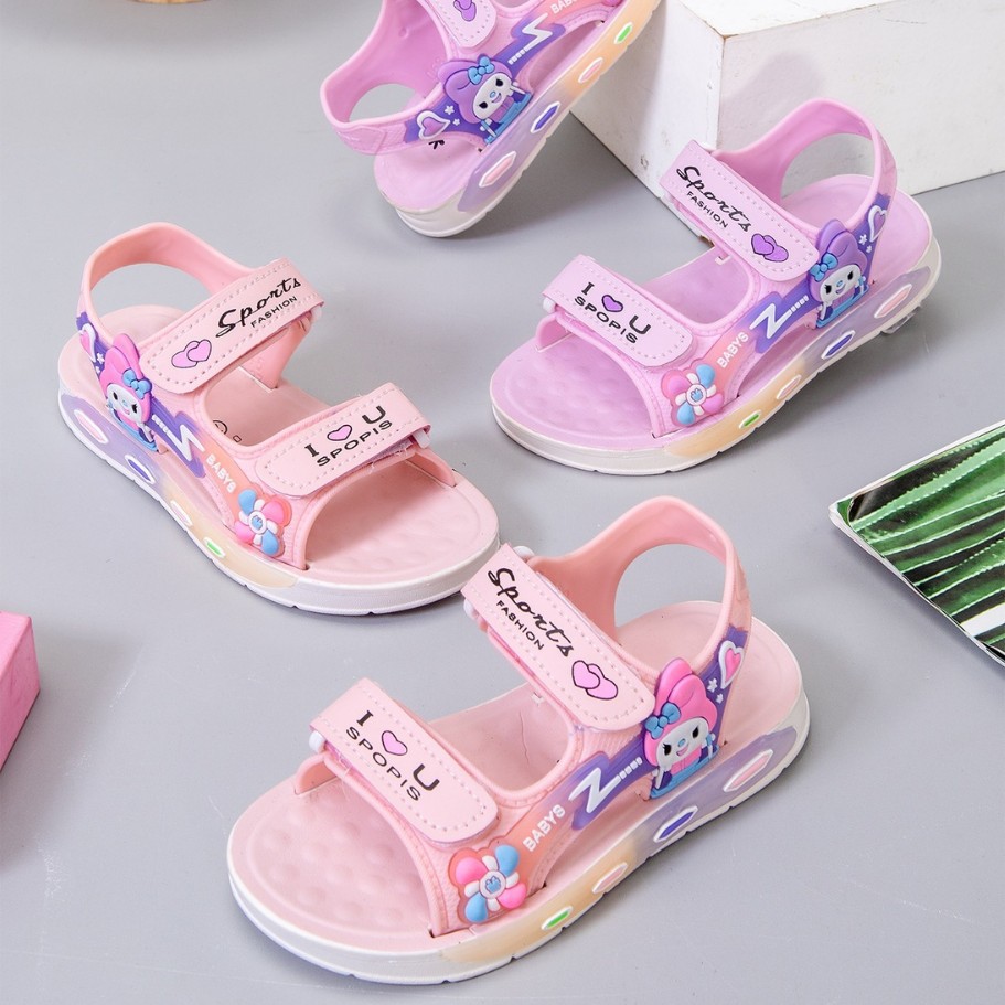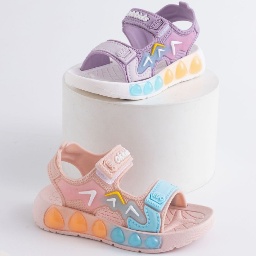 2025EVA新型子供可爱い可発光包头サンダルソフト底赤ちゃんホーム2着穴靴卸