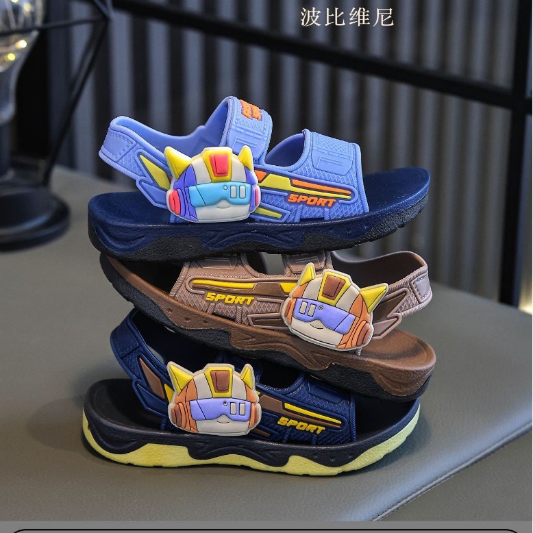 2025新型の夏の男の子の漫画の子供のビーチの靴の子供の柔らかい底の中で大きい子供のファッションの男の子のサンダルの卸売り