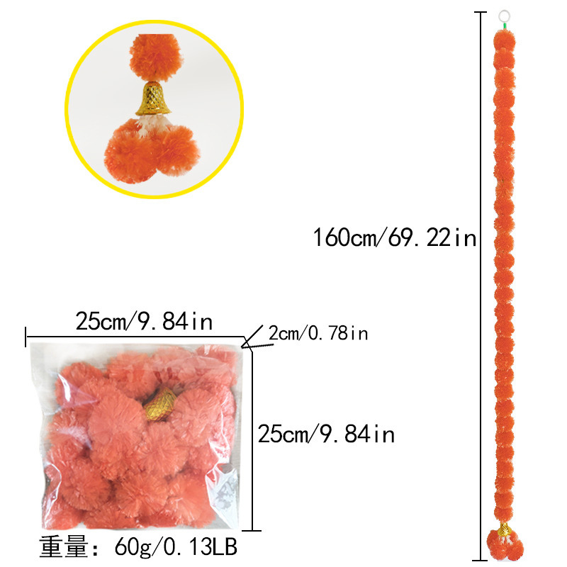 マリーゴールドガーランドベルペンダント装飾断食祭礼花ストリングメキシコ死者の日プラスチック装飾