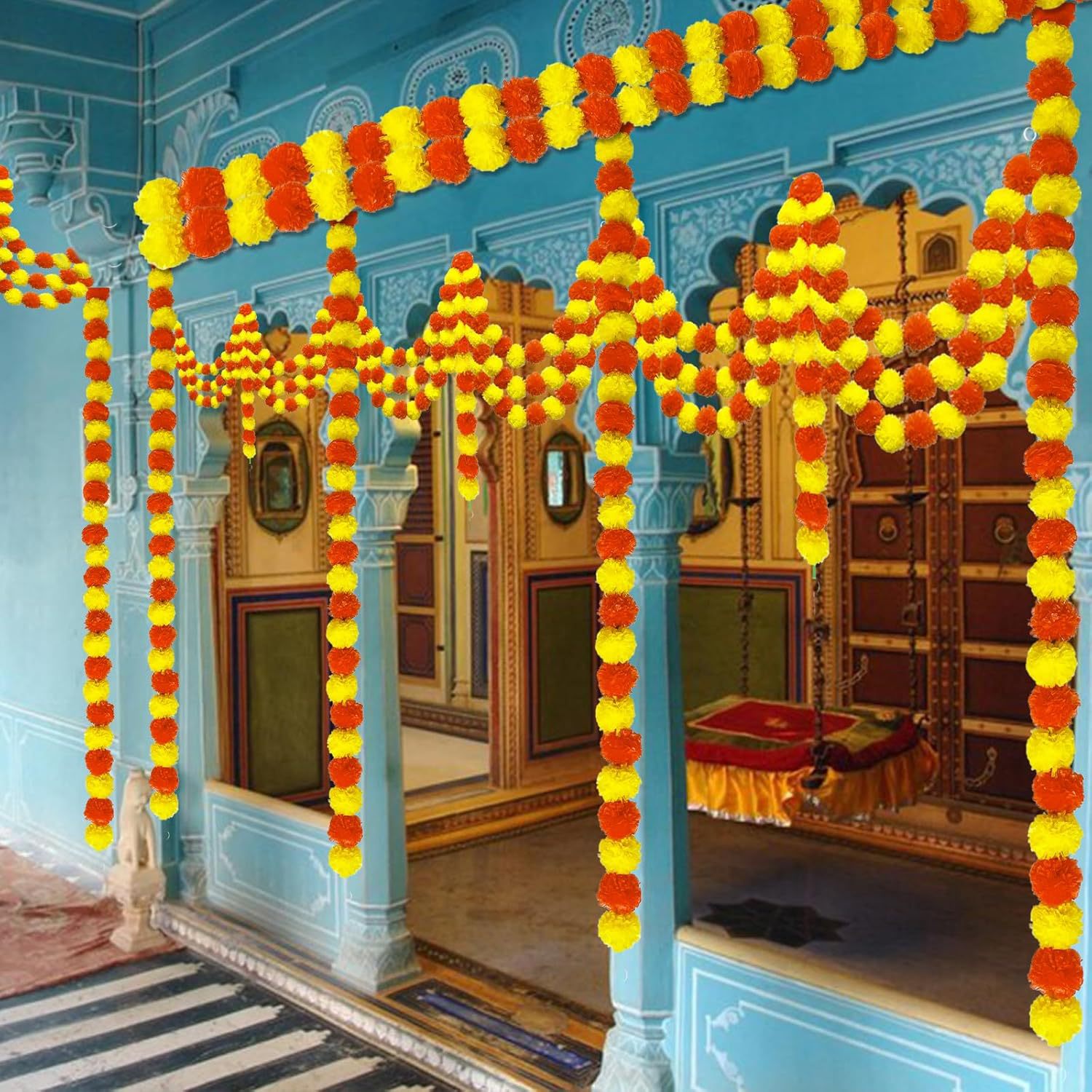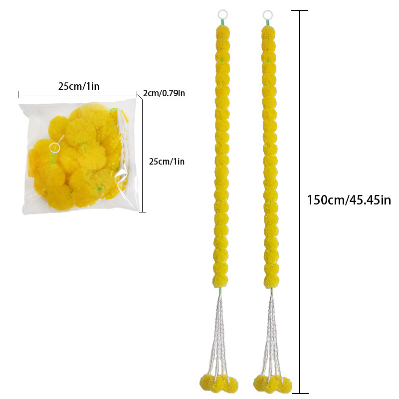 インドの結婚式の装飾花輪フラワーストリングメキシコ死者の日ハロウィンプラスチック花輪マリーゴールデンフラワーストリング花輪
