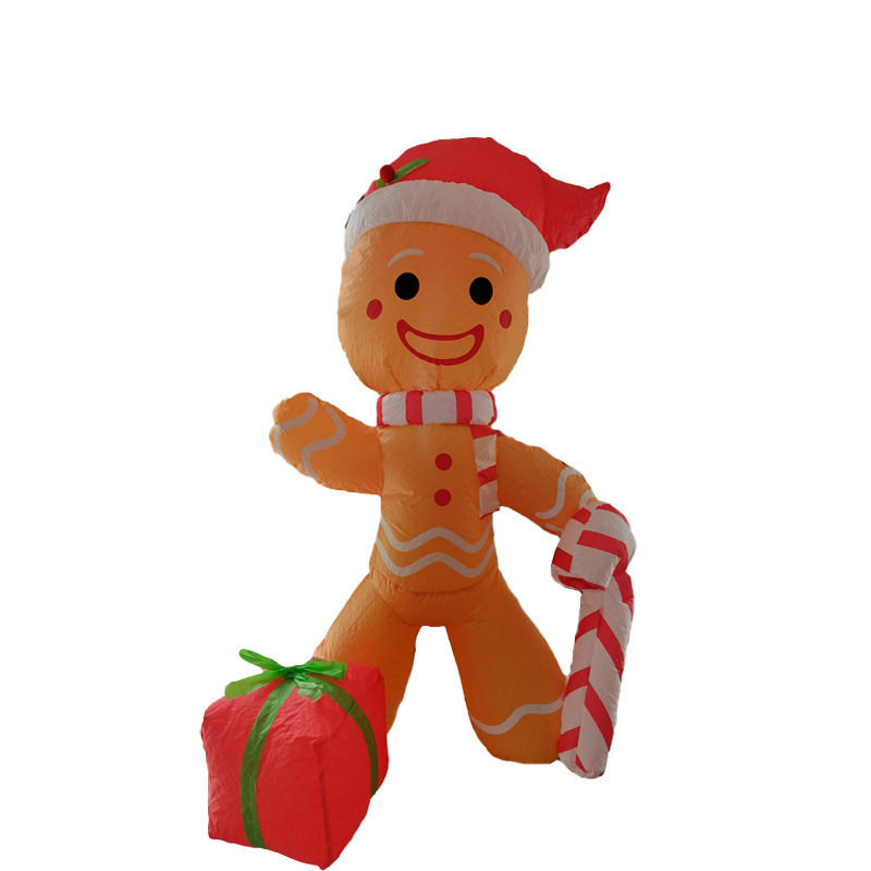 国境を越えたクリスマスにジンジャーパイ人の松葉杖砂糖ギフトボックスの空気型ledランプ発光装飾品庭の置物