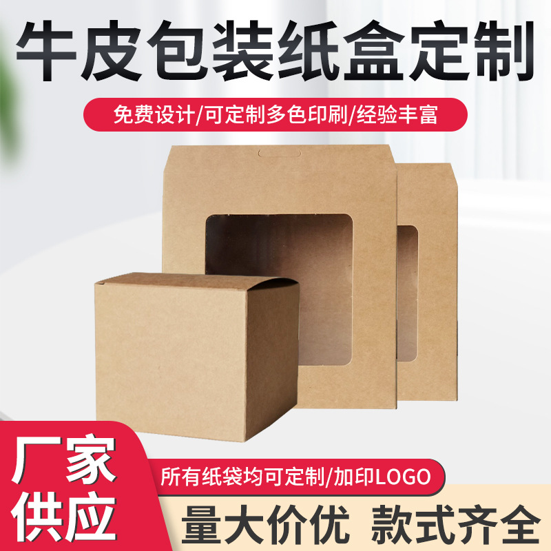 窓開けクラフト紙焙煎洋菓子箱マフィン紙コップケーキ箱使い捨て包装箱シュークリームプレゼント包装箱