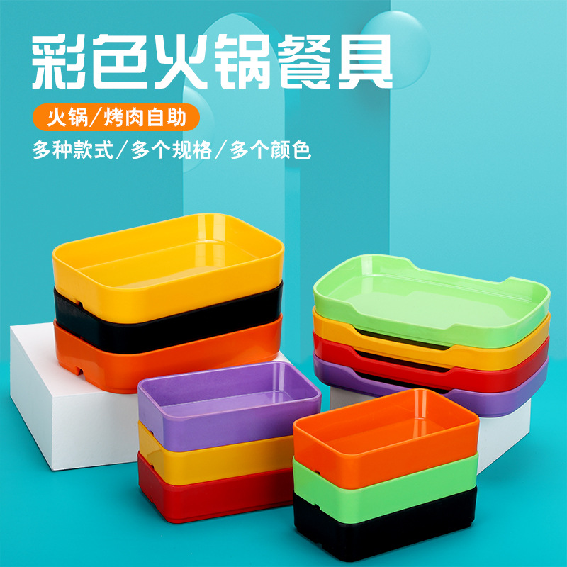 カラープラスチック創意長方形バイキング鍋おかず皿焼き肉皿スナック皿メラミン食器