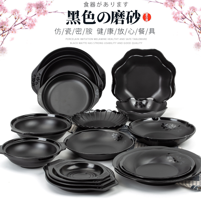 黒赤メラミン腸粉皿ファーストフードお皿お皿お皿バーベキュー皿ビュッフェ皿お皿お皿セット食器