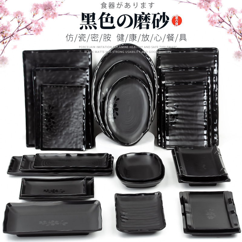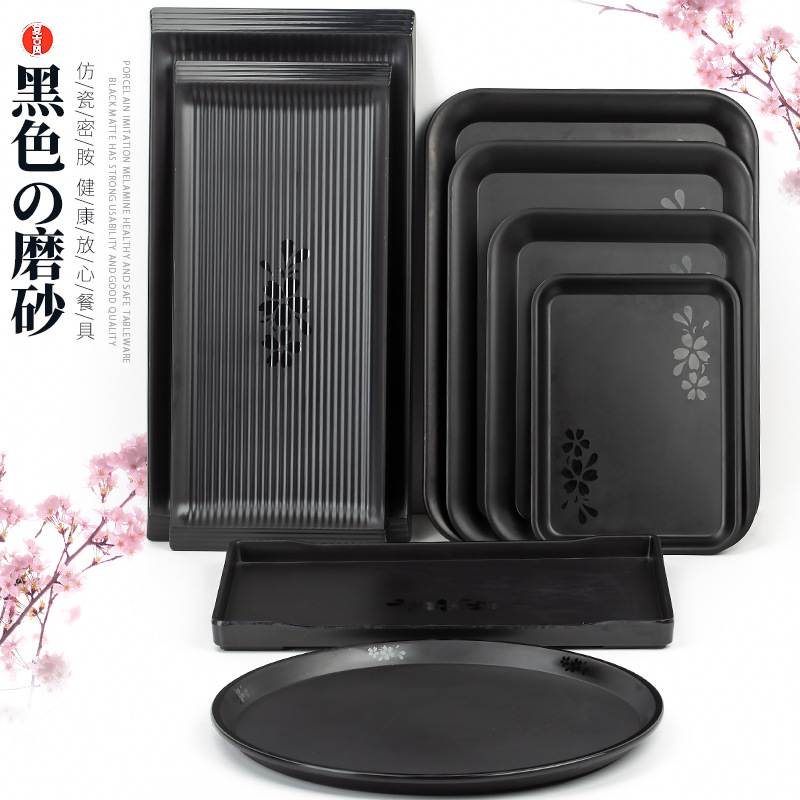黒つや消しメラミン長方形トレーホテル端料理皿レストラン浅平皿寿司皿焼肉焼き皿