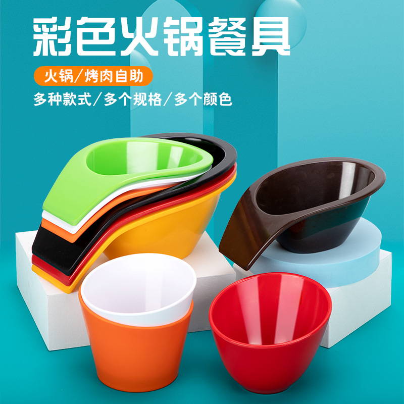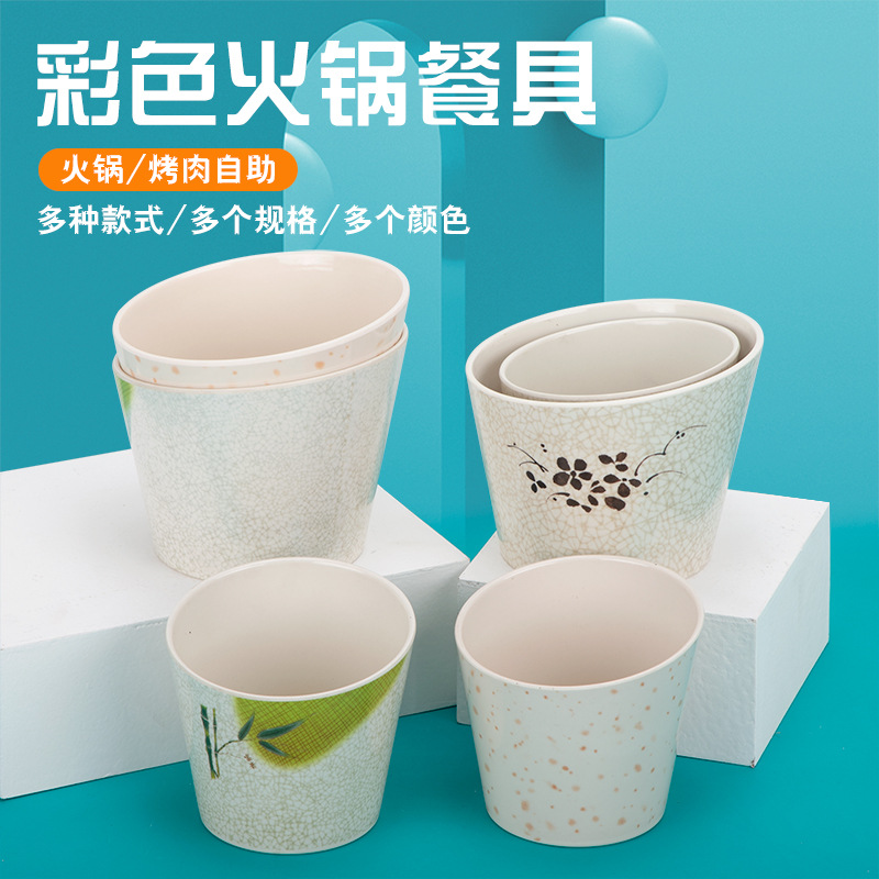 新商品のメラミンビュッフェレストランの火鍋店の斜め口の料理碗の調味料碗の色のアイデアの料理桶は磁器の食器をまねて転んで耐えます。
