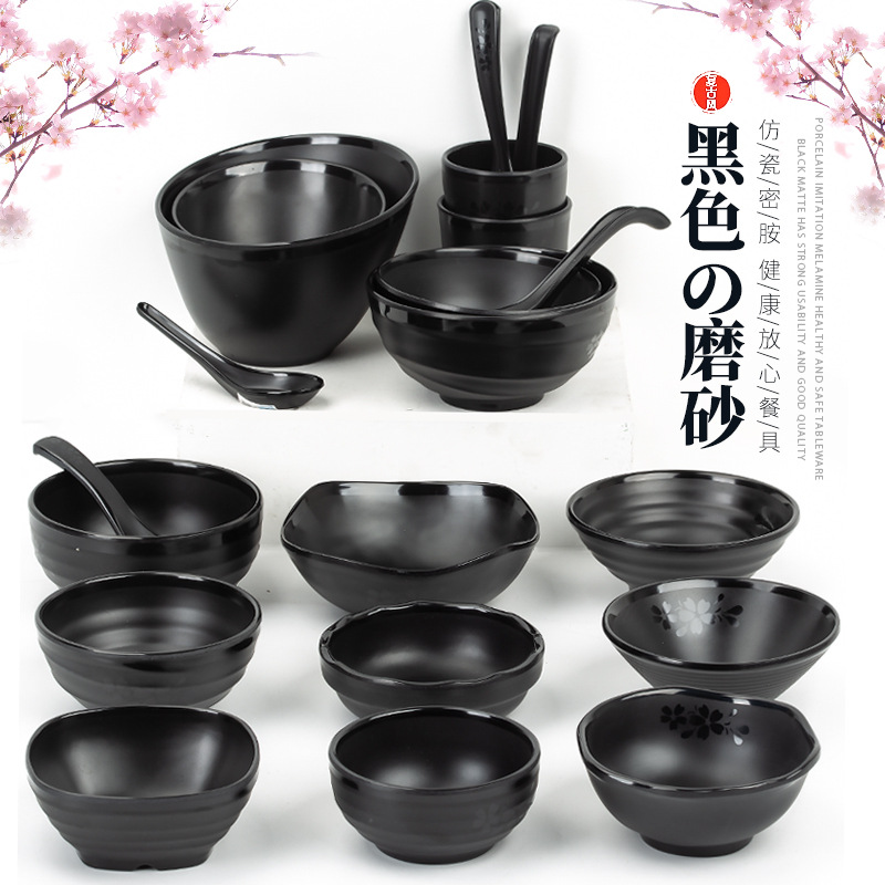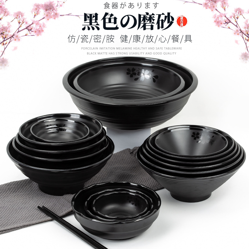 黒色メラミン艶出し商用味千ラーメン碗プラスチック飯碗軽食碗麻辣热碗ナット粉碗食器食器