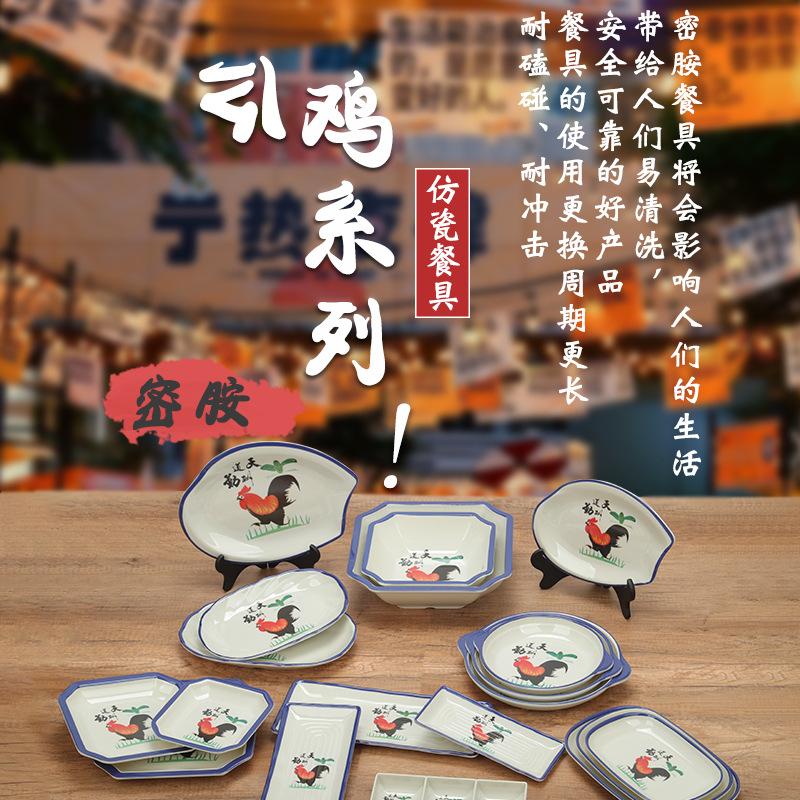 レトロ農荘専用メラミンバーベキュー皿セルフサービスレストラン軽食腸粉皿アワビ皿雄鶏プラスチック食器