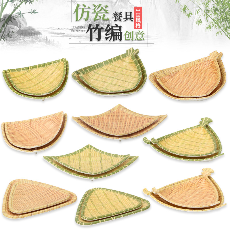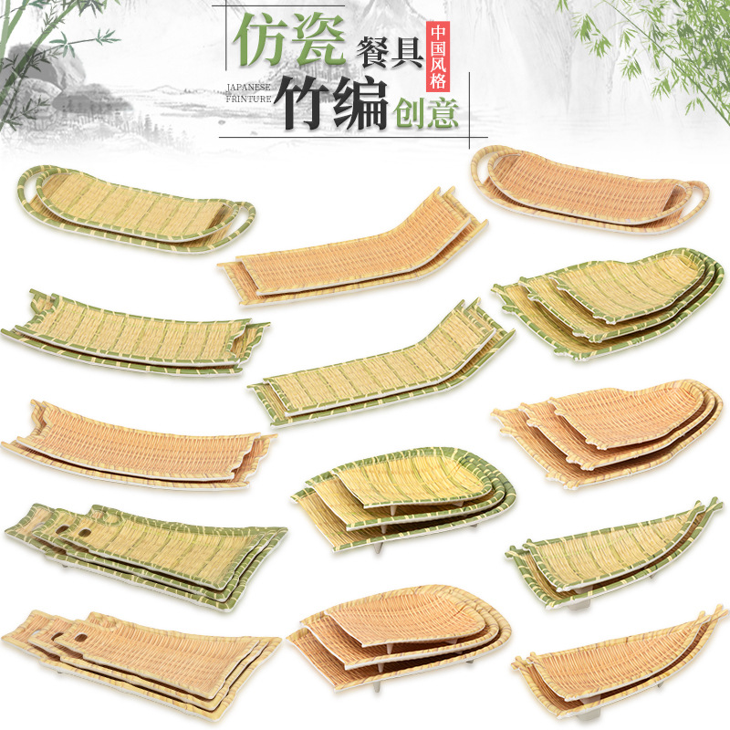 創意は磁器の竹をまねて箕を編んで野菜の皿のプラスチックの寿司の皿のバーベキューの皿のメラミンの揚げ物のお菓子の軽食の皿の食器を作ります。