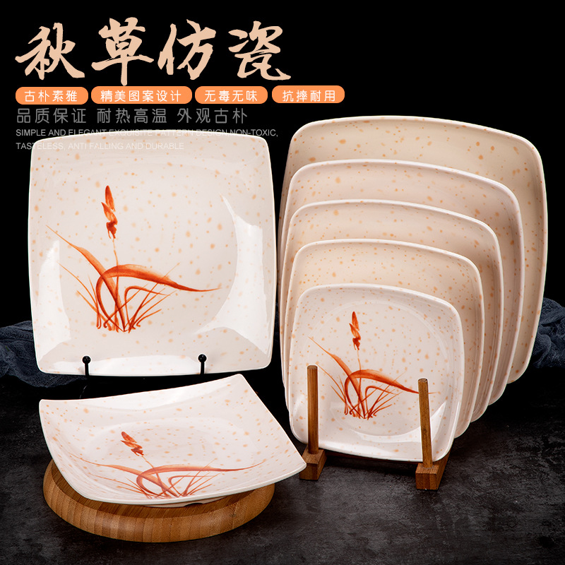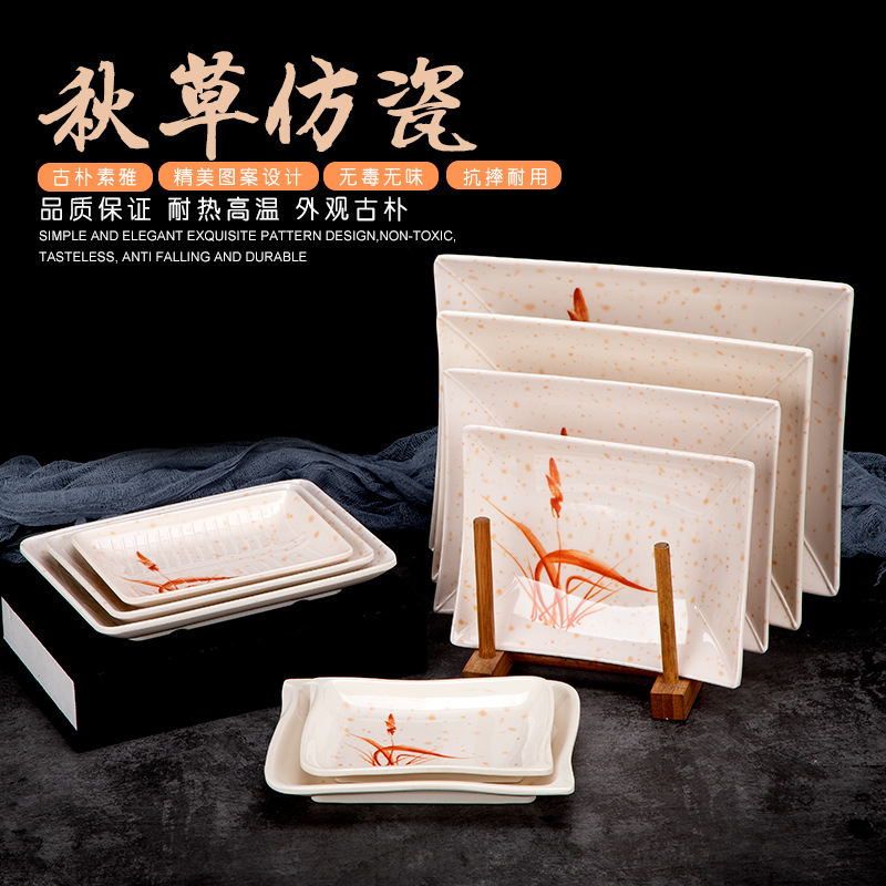 秋草メラミンバイキングホテルの四角い料理皿の冷たい料理皿の腸の粉の皿のファーストフードの皿のプラスチックは食器を落とします。