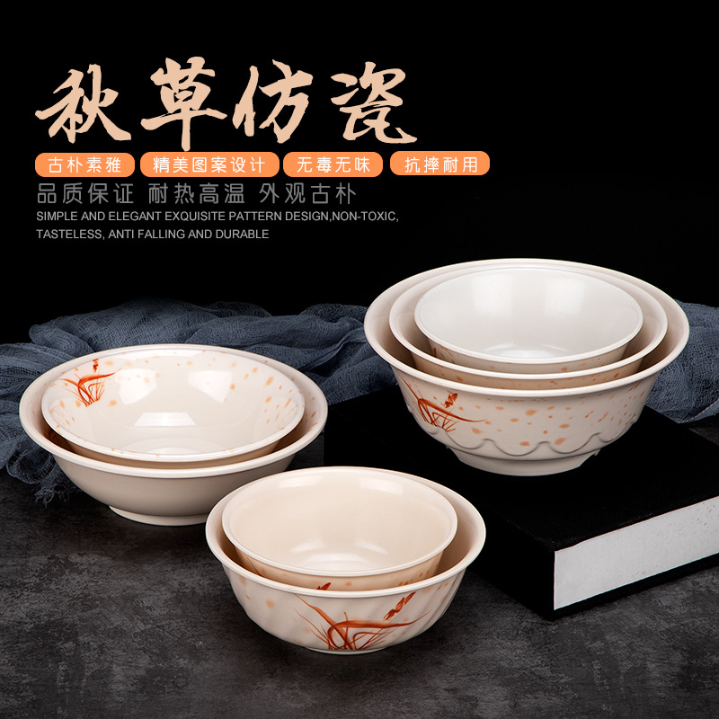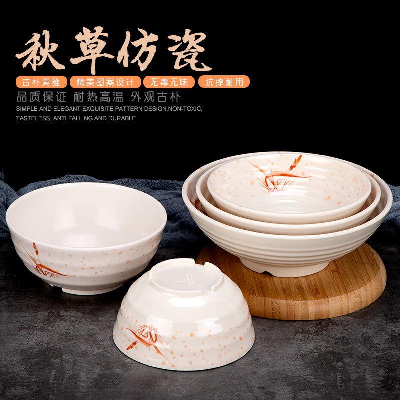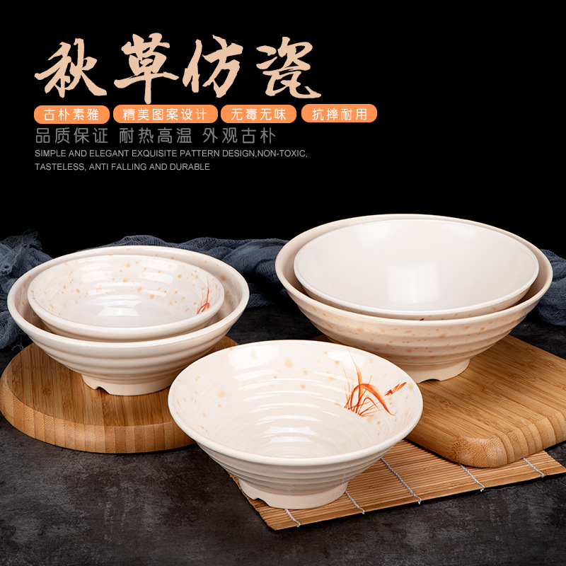 秋草レストランのご飯碗の麻辣热碗のスープ碗の味の千ラーメンの碗の饅頭の碗のおかゆの碗のメラミンのプラスチックは食器を落とすことに耐えます。